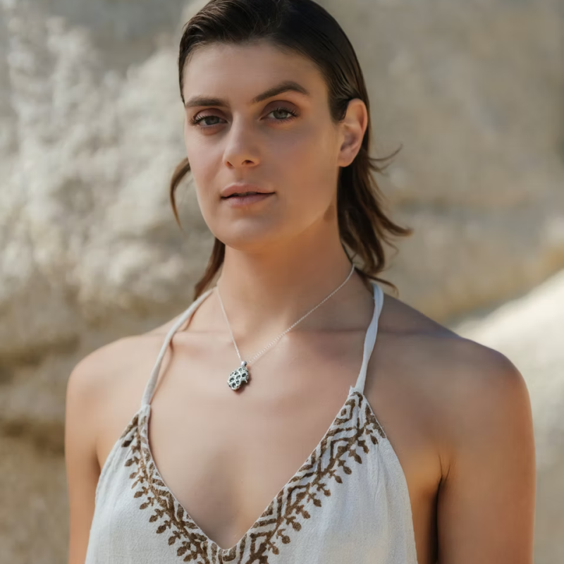 Treasure from the ocean. The Whisper of Stone necklace captures the harmony of nature through timeless elegance. Cast from the imprint of a real seashell, it reflects organic beauty in a refined, minimal design.