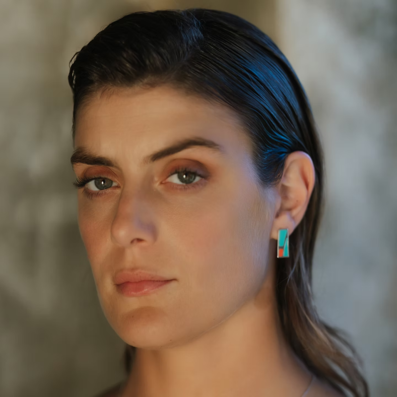 Althea is a jewel of contemporary elegance, defined by architectural clarity and refined aesthetics. Its tile-inspired geometry is combined with three enamel colors, creating a balanced composition of light, color, and form. Subtle references to ancient Egyptian aesthetics and influences from Vitro lines add depth and timeless appeal to a design of elevated character.Handcrafted in Greece by Eros Y Alma